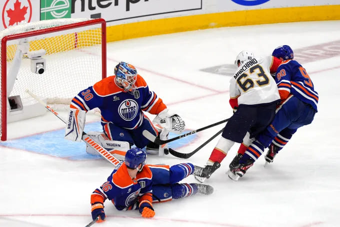 Флорида Пантерс победили Эдмонтон Ойлерс со счётом 5-2 в пятой игре финала Кубка Стэнли и теперь близки к завоеванию второго подряд титула. Брэд Маршанд, забивший две шайбы, стал ключевым игроком, а Сэм Беннетт продолжил свою результативную серию. Теперь «Пантерс» могут выиграть Кубок на своём льду в следующей игре.